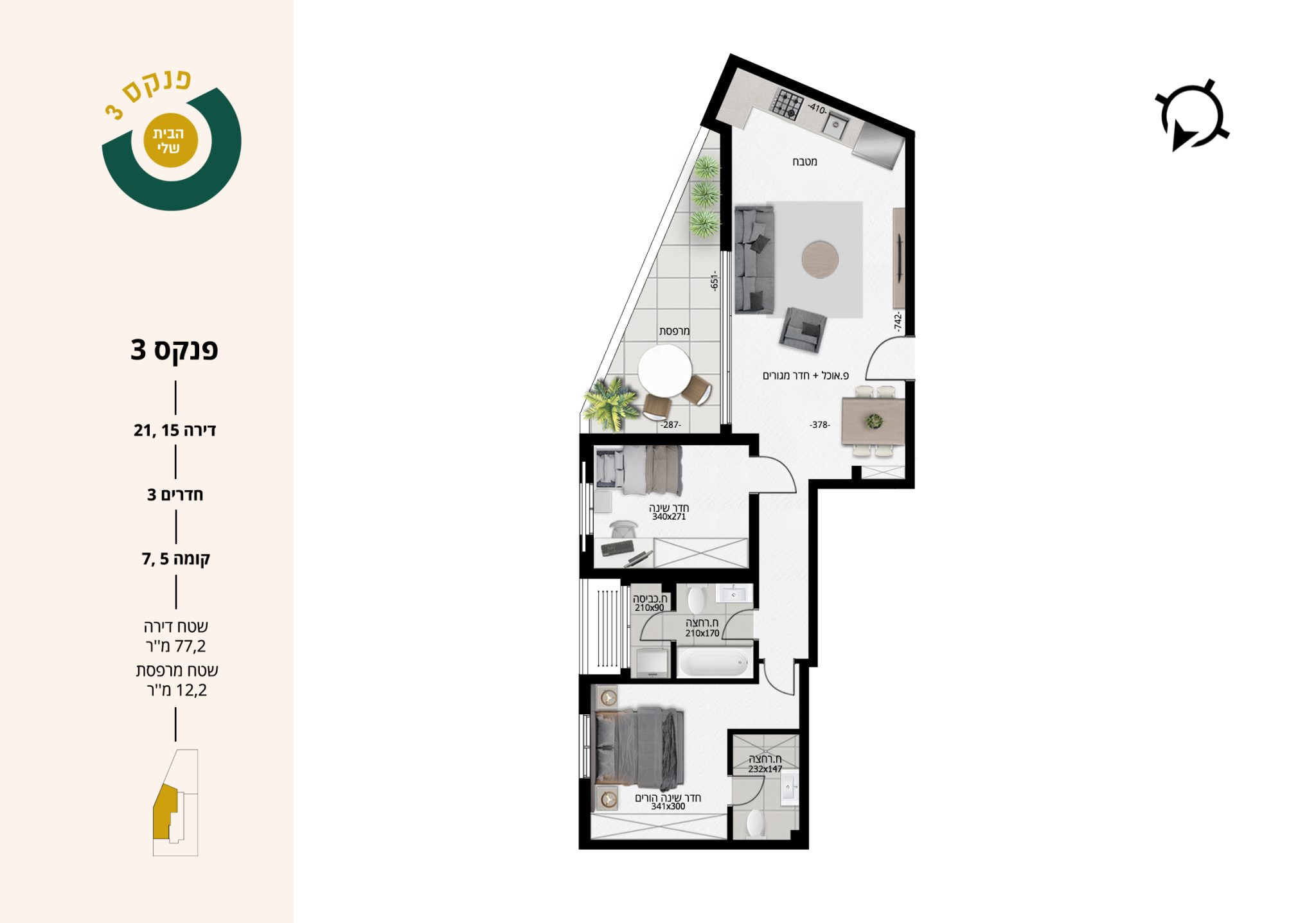 3 חדרים | קומות 5,7 | דירות 15,21
