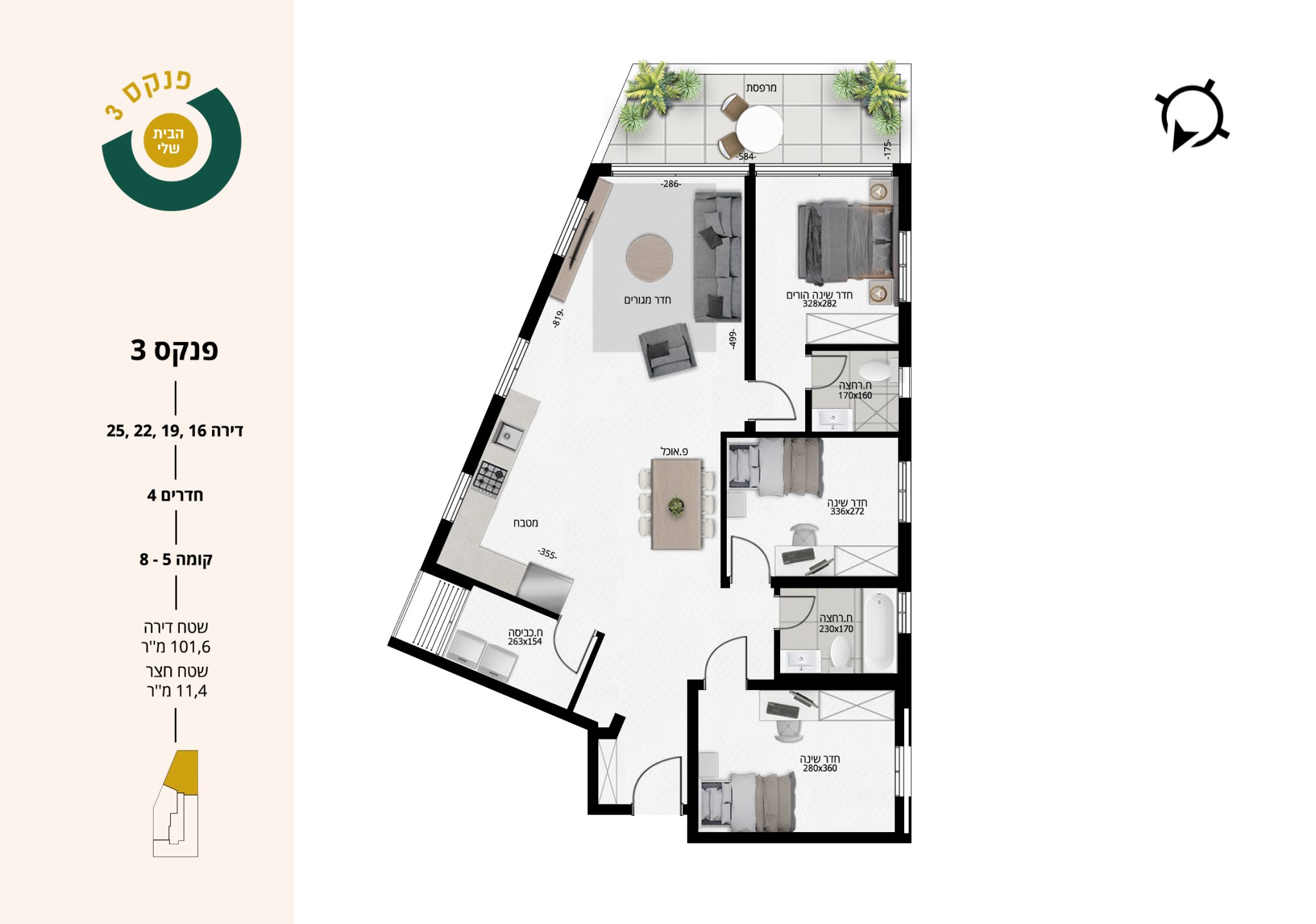 4 חדרים | קומות 5-8 | דירות 16,19,22,25