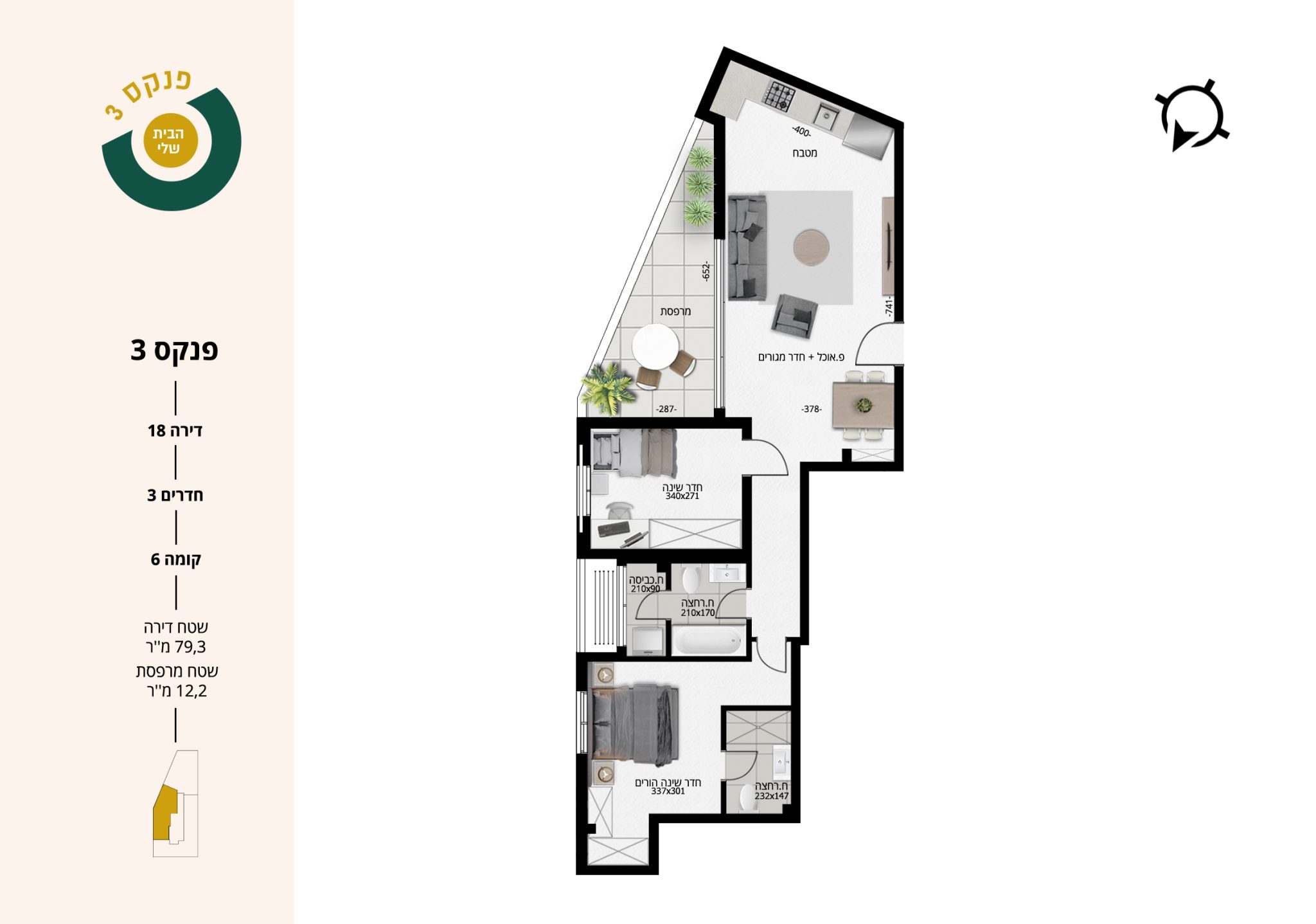 3 חדרים | קומה 6 | דירה 18