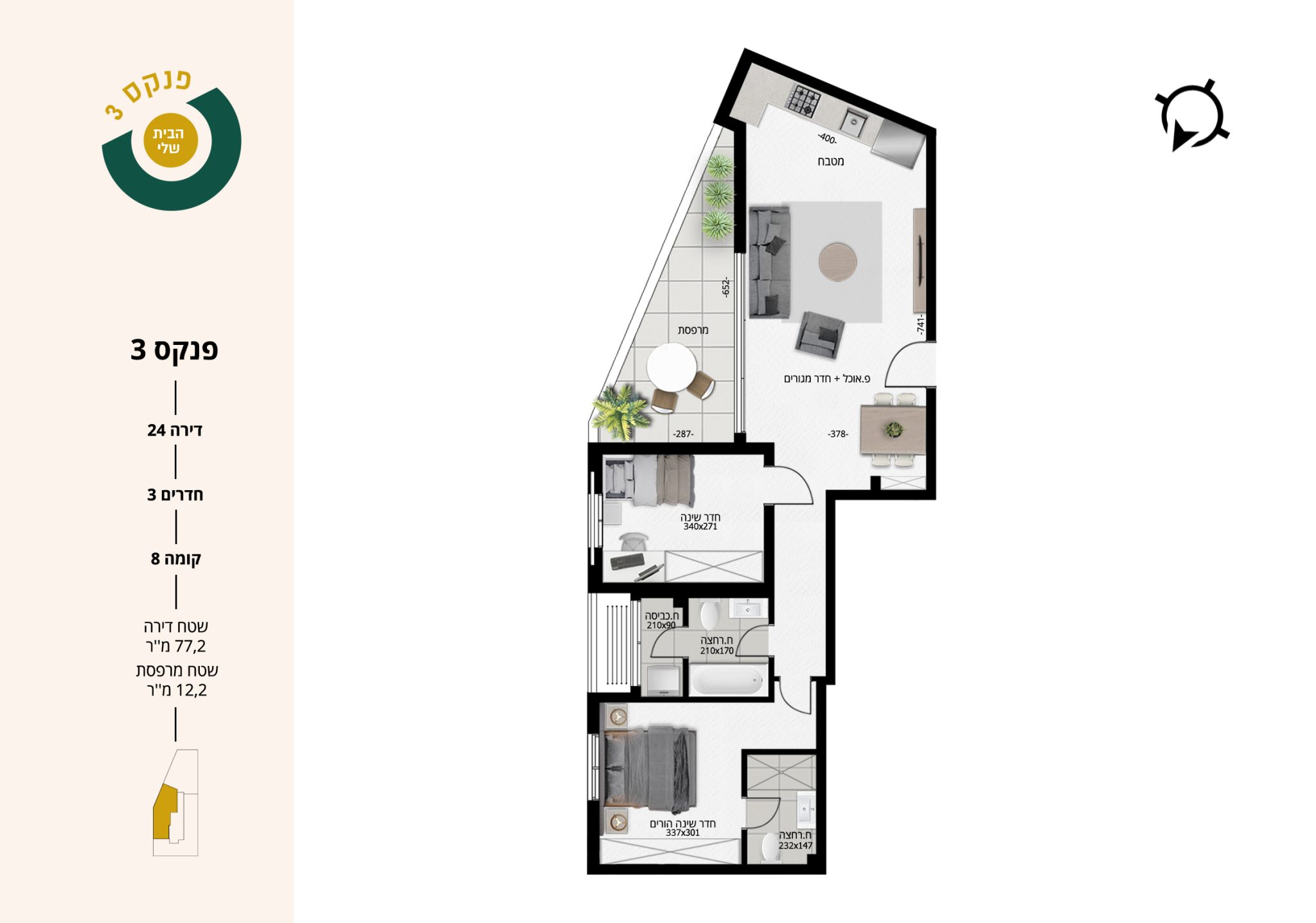 3 חדרים | קומה 8 | דירה 24