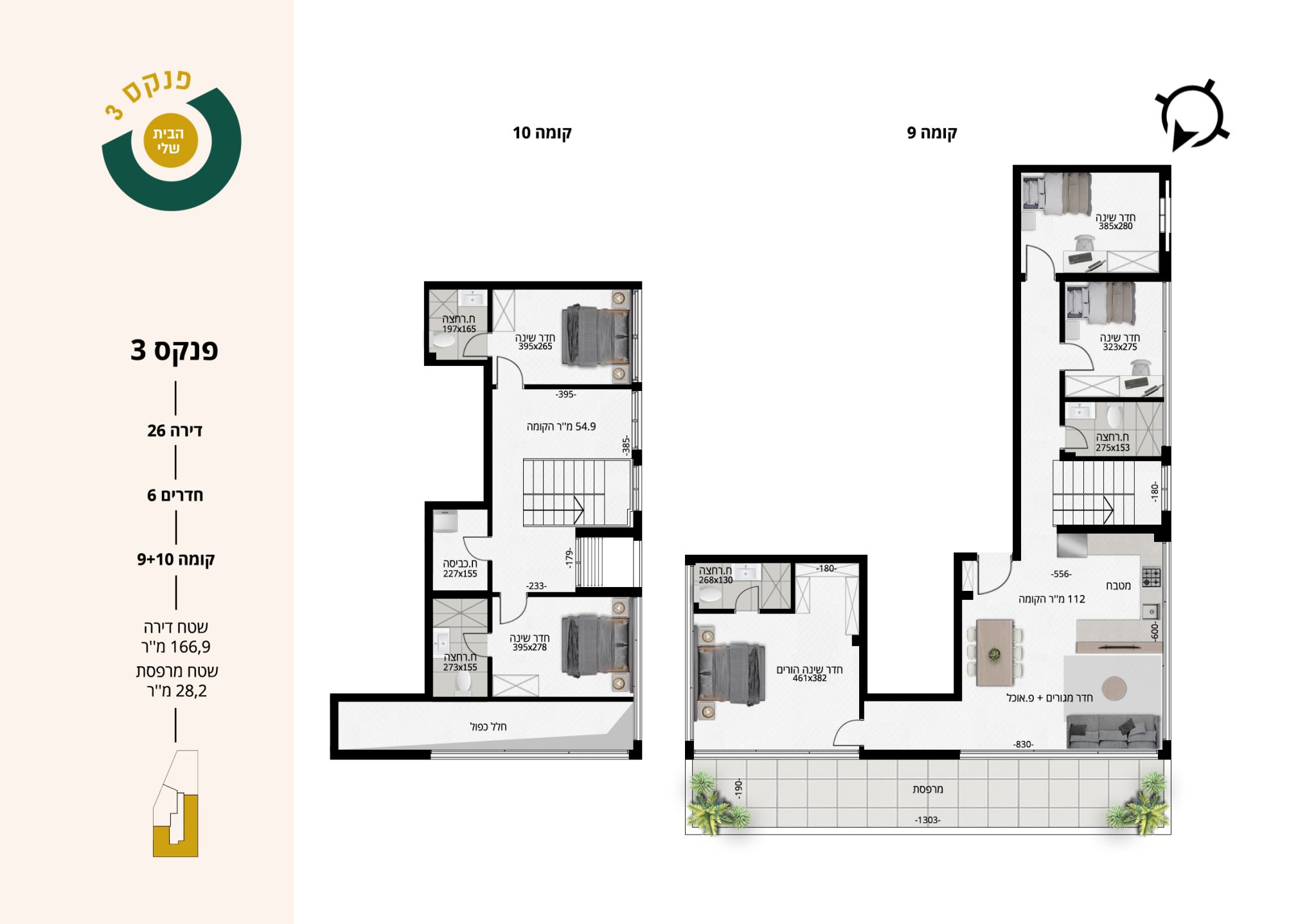 6 חדרים | קומות 9+10 | דירה 26