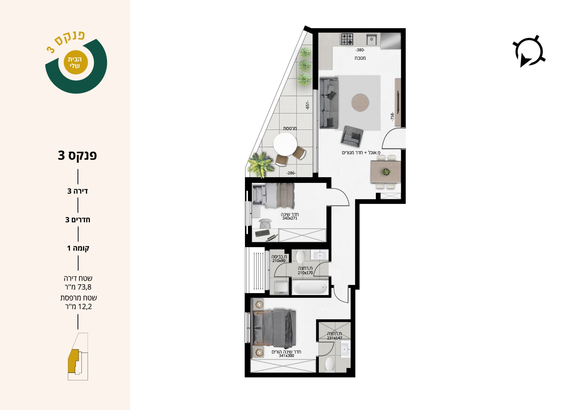 3 חדרים | קומה 1 | דירה 3