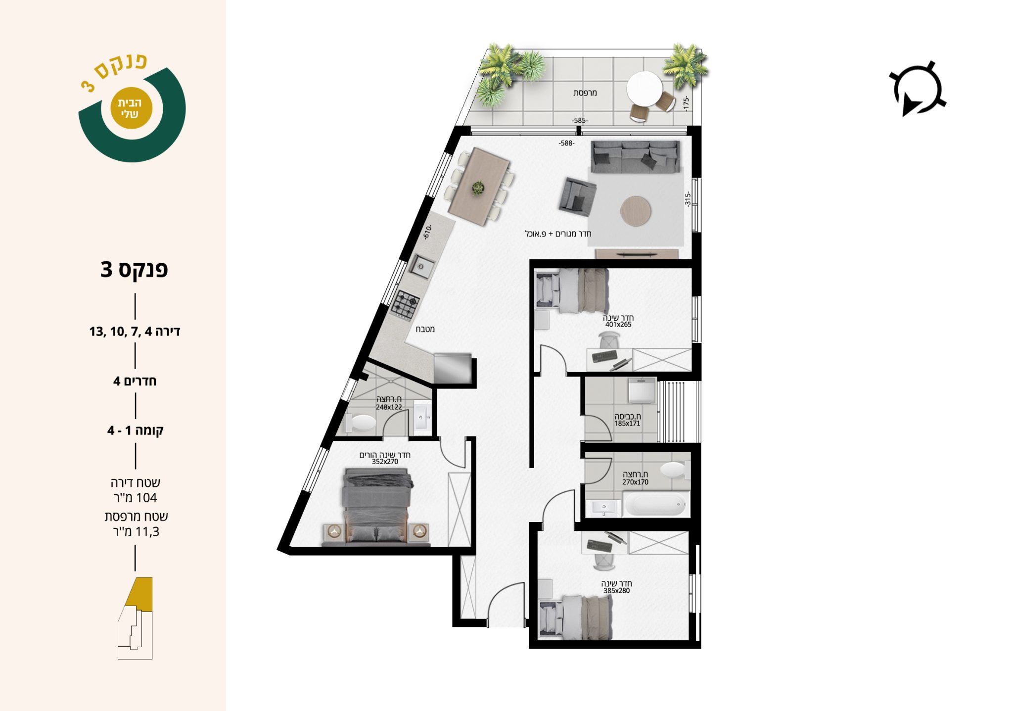 4 חדרים | קומה 1-4 | דירות 4,7,10,13