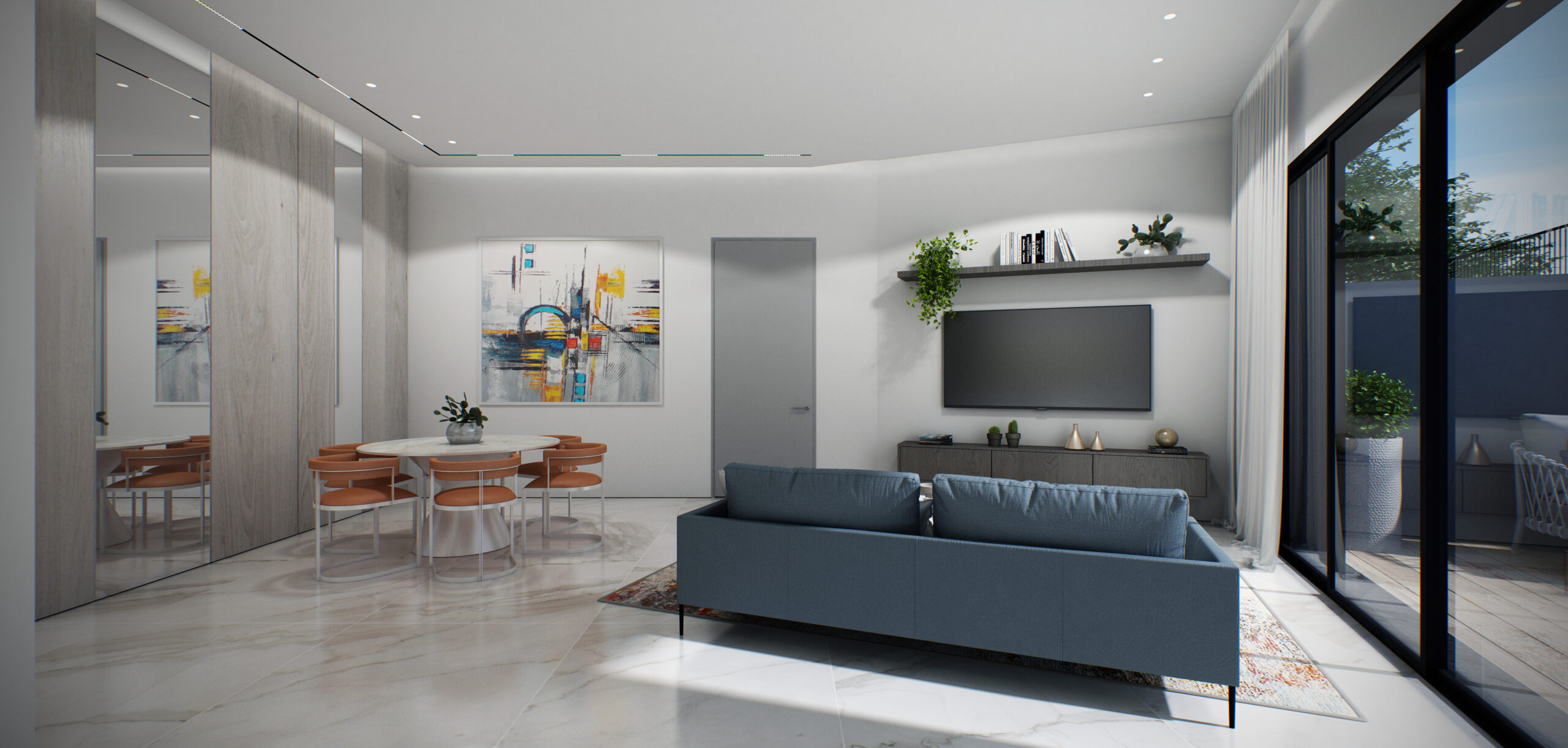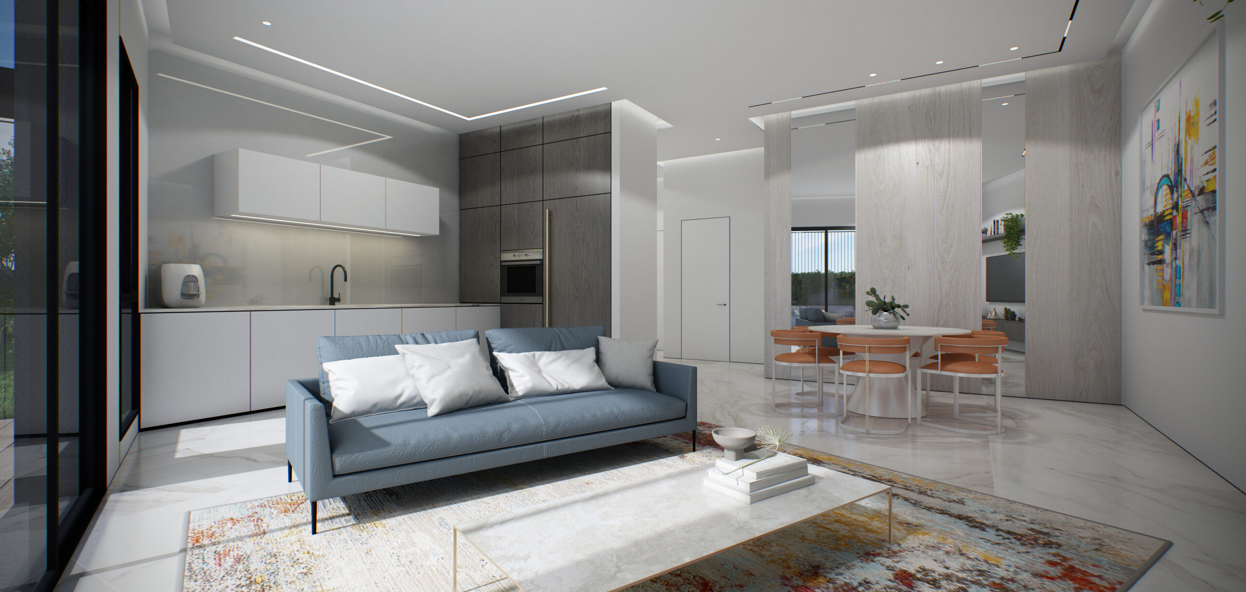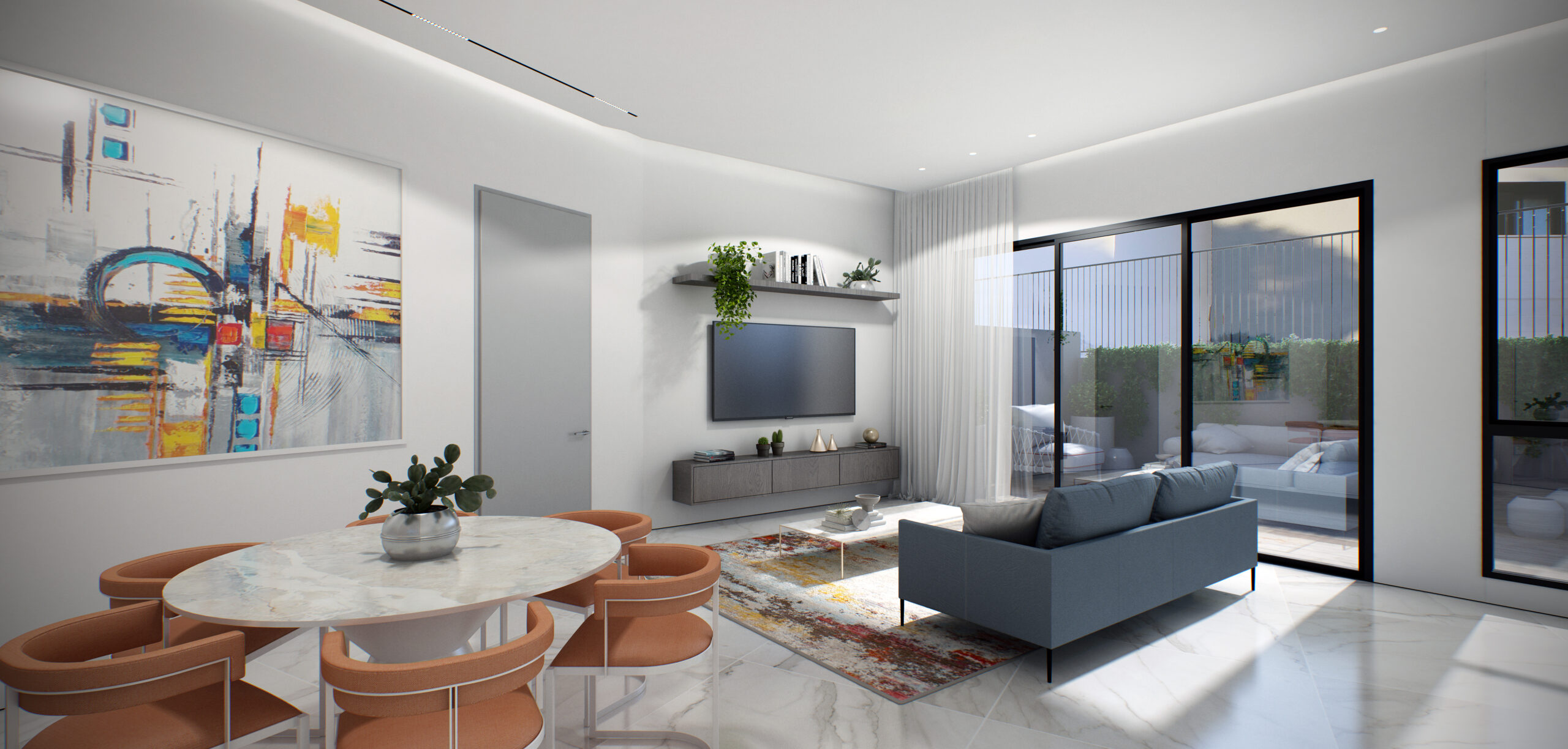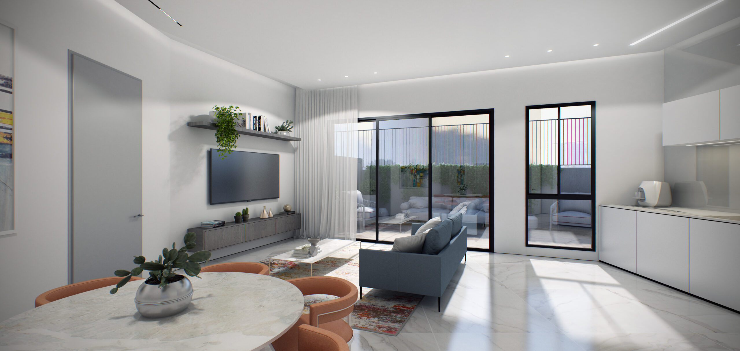 למרפסת שמש (למעט בחדרים רטובים)